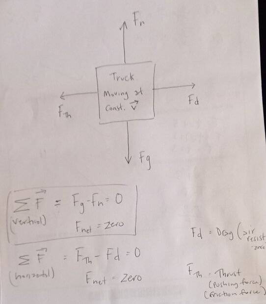 Which forces are involved in a truck moving with constant velocity (and therefore no acceleration)?